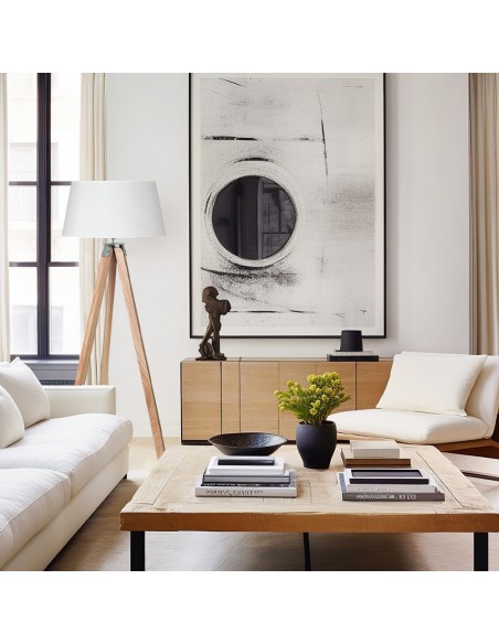 Carilux 1182xl Lampara De Pie Plegable Madera Paraiso Blanco 1 X E27 Pantalla De Lino Alto 1 40mts Pantalla 40x50x25cm