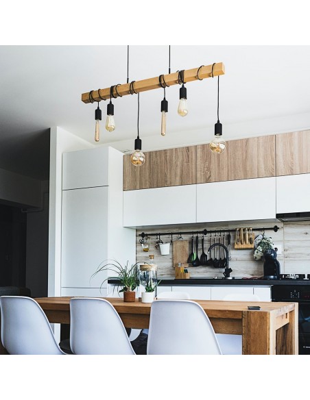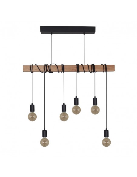 Carilux 21 6 Colgante Vintage Enredado 6 X E27 Base Madera Negro 60cm Barral Madera Natural 120cm 2mts Cable