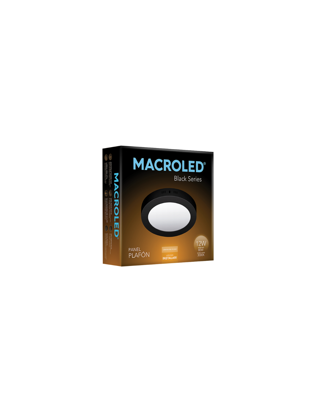 Ver todos Zapatillas Prolongadores Y Cables Armados Con Cable Prolongaciones Sin Cable- Macroled Npr12ww Plafon Led Negro Redondo 12w 170mm X 40mm 3000k Luz Calido